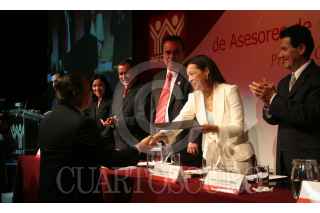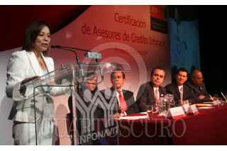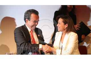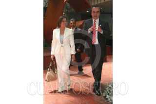 MÉXICO, D.F., 20MARZO2007.- La secretaria de Educación, Josefina Vázquez Mota, y el director general del INFONAVIT, Víctor Manuel Borras, durante la entrega de certificados a asesores inmobiliarios. FOTO: ISAAC ESQUIVEL/CUARTOSCURO.COM
