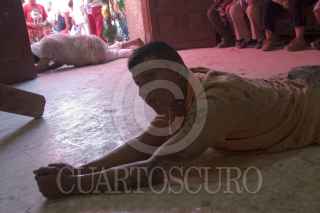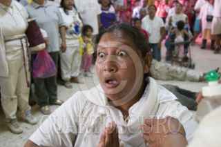 ESPINAZO NUEVO LEÓN. 20MARZO2007.-NIÑO FIDENCIO. En pleno trance, junto a la tumba del niño Fidencio y después de recorrer de rodillas, desde la entrada al pueblo uno 500 metros, esta fiel Fidencista llora, mientras decenas de ¨materias¨ofrecen sus dones de curación a los fieles fidencistas que se reúnen como todos los años durante la celebración de las fiestas de San José, en honor del Niño Fidencio, en los alrededores del Cerro de la Campana. FOTO: PEDRO VALTIERRA/CUARTOSCURO.COM