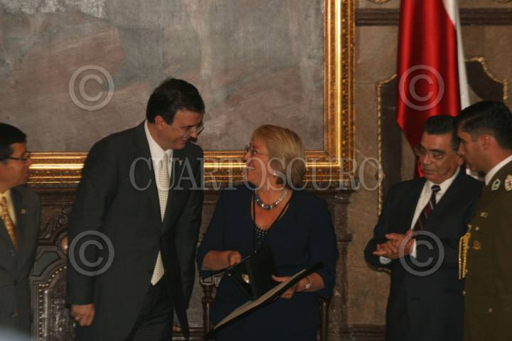 MEXICO, D.F. 20MARZO2007.- Marcelo Ebrard, jefe de gobierno de la ciudad de México recibió a Michelle Bachelet, presidenta de Chile en el Antiguo Palacio del Ayuntamiento, donde le entregó las llaves de la ciudad. FOTO: NELLY SALAS/CUARTOSCURO.COM