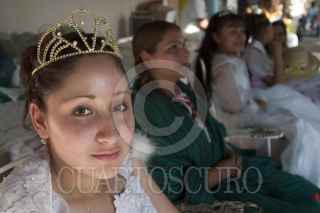 ESPINAZO NUEVO LEÒN.20MARZO2007.-NIÑO FIDENCIO.– Una Reina encabezó al grupo de fieles fidencistas que procedente de Ciudad Juárez llegó hasta este pueblo, ubicado en la frontera de Nuevo León y Coahuila para celebrar el Santo del niño milagroso que a finales de los años 20 y principios de los 30, del siglo pasado, sanaba a decenas de persona (operaba con vidrios y hacia hablar a los mudos, se dice) durante la celebración de las fiestas de San José, en honor del Niño Fidencio. FOTO: PEDRO VALTIERRA/CUARTOSCURO.COM