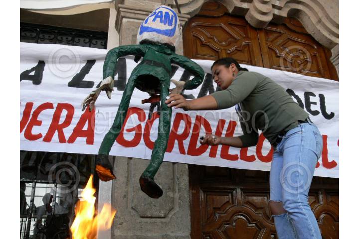 MÉXICO D.F. 20MARZO2007.- Un grupo de trabajadores afiliados al Issste se manifestaron por las calles y frente a la sede del congreso local. Los manifestantes aventaron huevos a la puerta del recinto legislativo. FOTO: PATRICIA MORALES/CUARTOSCURO.COM