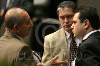MÉXICO, D.F., 20MARZO2007.- Los diputados Juan Guerra y Cristian Castaño, durante la sesiñon en la Cámara de Diputados en la que se espera se le de lectura a la iniciativa de reforma de la Ley del ISSSTE. FOTO: MOISÉS PABLO/CUARTOSCURO.COM