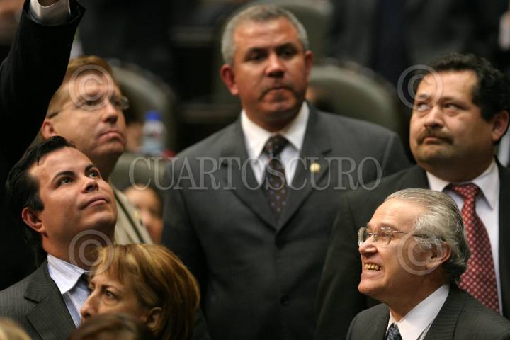 MÉXICO, D.F., 20MARZO2007.- Los diputados Miguel Angel Jímenez, Nueva Alianza, Juan Manuel Paras González, PRI y Manuel Cárdenas, Nueva Alianza, durante la sesión en la Cámara de Diputados en la que se espera se le de lectura a la iniciativa de reforma de la Ley del ISSSTE. FOTO: MOISÉS PABLO/CUARTOSCURO.COM