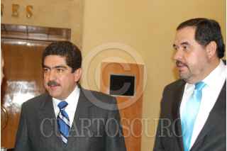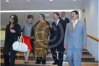 MÉXICO, D.F., 20MARZO2007.- Beatriz Paredes Presidenta Nacional del PRI acompañada de Emilio Gamboa Patrón Coordinador de la bancada priista, y Carlos Navarrete Senador del PRD a su salida de la comida con la presidenta de Chile Michelle Bachelet, en un lujosos hotel de la ciudad. FOTO: CLAUDIA ARÉCHIGA/CUARTOSCURO.COM