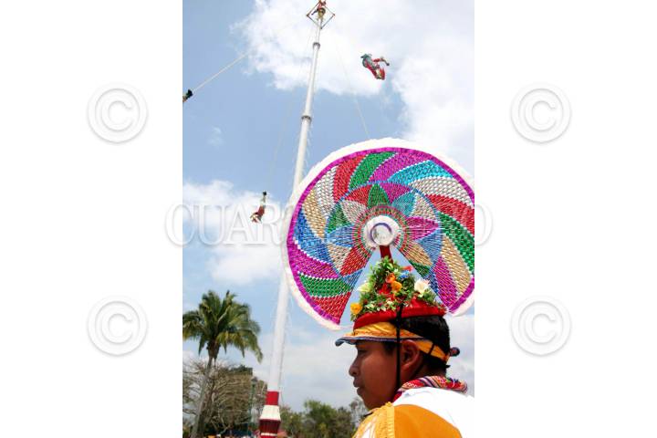 TAJIN,VERACRUZ 20MARZO2007.- Voladores de zozocolco realizan su último acto en el palo del volador donde en esta ocasión se presentaron mujeres voladoras como es el caso de Viviana Guerrero. FOTO: CARLOS TISCHLER/ CUARTOSCURO
