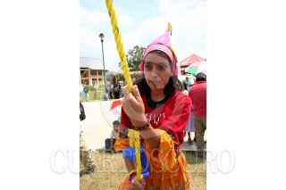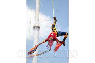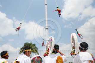TAJIN,VERACRUZ 20MARZO2007.- Voladores de zozocolco realizan su último acto en el palo del volador donde en esta ocasión se presentaron mujeres voladoras como es el caso de Viviana Guerrero. FOTO: CARLOS TISCHLER/ CUARTOSCURO