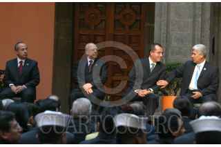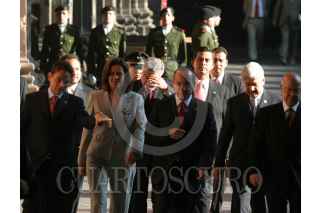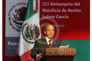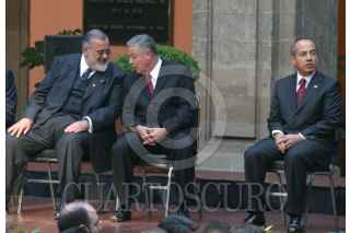 MÉXICO D.F. 21MARZO2007.- El presidente Felipe Calderón saluda a invitados al finalizar la la ceremonia en conmemoración al CCI aniversario del natalicio de Benito Juárez realizado en Palacio Nacional. FOTO: SAÚL LÓPEZ/CUARTOSCURO.COM