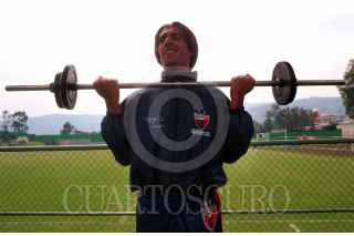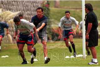 El director técnico del Atlante, Carlos Reynoso, observa el trabajo físico de sus jugadores que entrenaron en el centro Pegaso. FOTO: Pedro Mera/CUARTOSCURO.COM