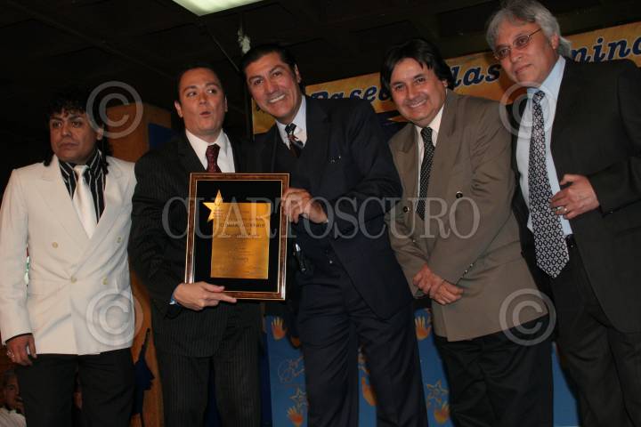 MÉXICO, D.F., 03MARZO2007.- En la plaza de las Estrellas, recibieron la presea "luminaria de oro", el legendario grupo chileno Los Ángeles Negros, por 40 años de trayectoria artística. FOTO: EZEQUIEL TLAXCALA/CUARTOSCURO.COM