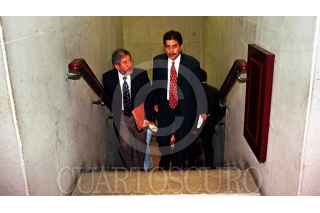 El líder de la bancada del PRD en el senado, Jesus Ochoa, llega a la sala de sesiones, donde esta mañana se trató el tema del asesinato de Digna Ochoa. FOTO: Eunice Adorno/CUARTOSCURO.COM