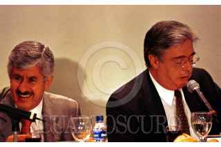 El panista Fausi Hamdam y Julio César Mendez, presidente del IPAB, durante la reunión de trabajo que sostuvieron esta tarde en el senado. FOTO: Eunice Adorno/CUARTOSCURO.COM