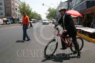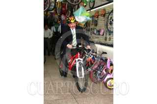 MÉXICO D.F. 30MARZO2007.-El titular de la Secretaría de Transporte y Vialidad, Armando Quintero, compró su bicicleta en un establecimiento de San Pablo, cerca de la Merced; la cual usará todos los lunes para transportarse de su domicilio al trabajo, como lo ordenara el jefe de gobierno. FOTO JEFTÉ ARGUELLO/CUARTOSCURO.COM