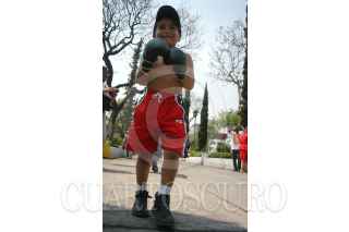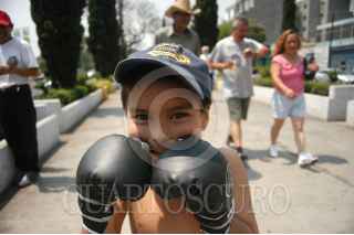 MÉXICO D.F. 31MARZO2007.- Un niño con el uniforme de un boxeador asiste a la peregrinación por el 44 aniversario de la asociación mutualista de exboxeadores de la república mexicana, esto de la glorieta de Peralvillo a la Basílica de Guadalupe. FOTO: GUILLERMO PEREA/CUARTOSCURO.COM
