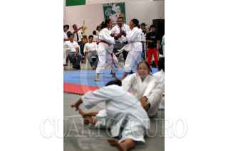 VILLAHERMOSA, TABASCO, 31MARZO2007.- Con la presencia de competidores de todo el país se da inicio a la "Copa Choda" de la diciplina de Karate Do. El evento se realiza en la Nave dos del parque Tabasco por espacio de dos días, en donde los atletas buscaran puntos clasificarios para eventos internacionales y un lugar en el selectivo Méxicano. FOTO: MARCO POLO GUZMÁN HERNÁNDEZ.