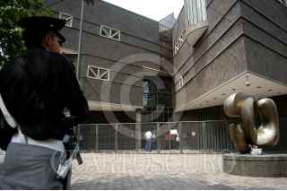 MÉXICO D.F. 31MARZO2007.-Elementos de la secretaria de seguridad del D.F. resguardan la embajada de Canada en nuestro país, horas después del atentado encontra de sus instalaciones. FOTO: GUILLEREMO PEREA/CUARTOSCURO.COM