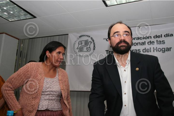 MEXICO, D.F.01ABRIL2007.-El titular del la Comisión de Derechos Humanos del Distrito Federal, Emilio Alvarez Icaza y Marcelina Bautista, secretaria general de la Confederación Latinoamericana y del Caribe de Trabajadoras del Hogar , en las instalaciones de la CDHDF. FOTO JEFTÉ ARGUELLO/CUARTOSCURO.COM