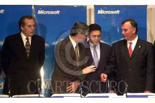 Rick Belluzzo y Luis ernesto Derbéz, durante la firma de convenio de Microsoft con con la Secrearia de Economía. FOTO: Christian Palma/CUARTOSCURO.COM