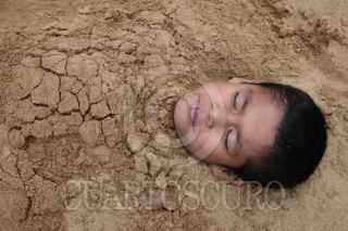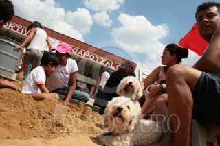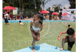 MEXICO, D.F.05ABRIL2007.-En el primer día de actividades de la playa artificial Reynosa, ubicada en la delegación Azcapotzalco, a las intalaciones del chapoteadero se les removió el impermebilizante, lo que ocasionó que los niños tuvieran que lavarse con detergente, para quitarse las manchas. FOTO JEFTÉ ARGUELLO/CUARTOSCURO.COM