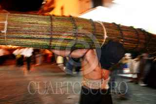 TAXCO,GUERRERO 05ABRIL2007.- Se llevaron a cabo las primeras procesiones de los peninentes quienes cargan rollos de espinas de zarza por las calles de la ciudad. FOTO: CARLOS TISCHLER/CUARTOSCURO.COM