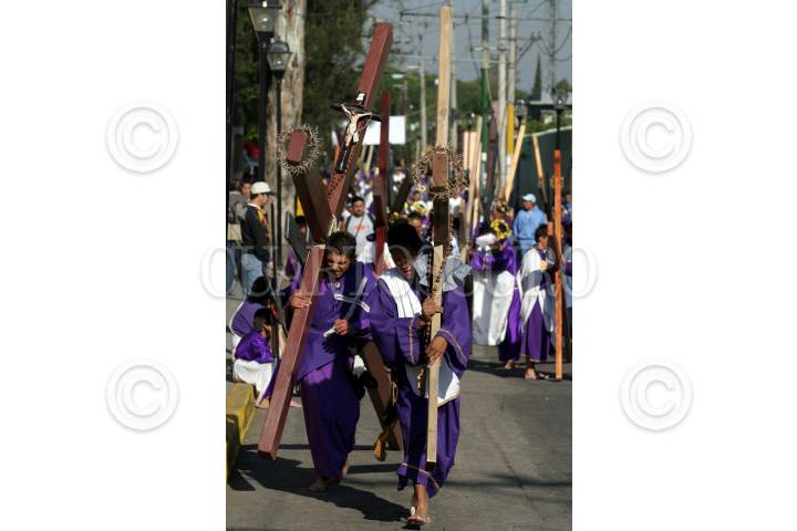 MÉXICO, D.F., 06ABRIL2007.- Desde temprano los nazarenos comenzaron a subir hacia el Cerro de la Estrella como parte de los ritos y festejos que se realizan en Iztapalapa en donde cada año se representa la Pasión de Cristo. FOTO: MOISÉS PABLO/CUARTOSCURO.COM