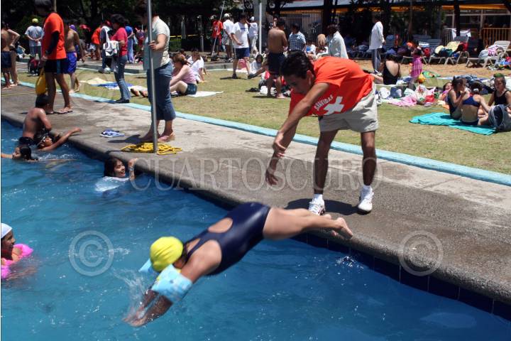 MÉXICO, D.F. 06ABRIL2007.- Continua la afluencia de vacacionistas en la playa artificial ubicada en Villa Olímpica esta Semana Santa. Un hombre a punto de hecharse un clavado porta un tatuaje con la imagen de San Judas Tadeo. FOTO: PAOLA HIDALGO/CUARTOSCURO.COM