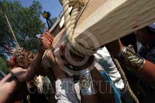 MÉXICO, D.F., 06ABRIL2007.- El joven José Manuel Guillen, quien representó a cristo en la pasión de Iztapalapa, fue crucificado en punto de las cuatro de la tarde en el Cerro de la Estrella, en la edición CLXIV de la representación. FOTO: MOISÉS PABLO/CUARTOSCURO.COM