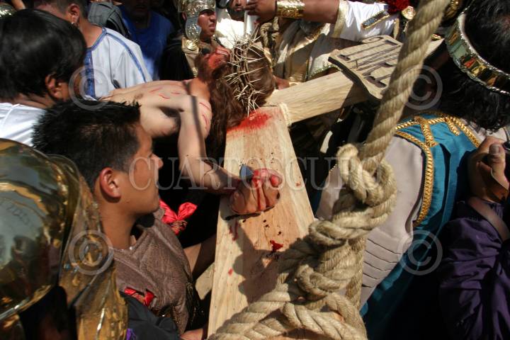 MÉXICO, D.F., 06ABRIL2007.- El joven José Manuel Guillen, quien representó a cristo en la pasión de Iztapalapa, fue crucificado en punto de las cuatro de la tarde en el Cerro de la Estrella, en la edición CLXIV de la representación. FOTO: MOISÉS PABLO/CUARTOSCURO.COM