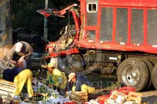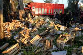 MÉXICO D.F. 06ABRIL200.- En avenida Río Churubusco casi con calzada de Tlapan el conductor de un camión torton cargado con varias toneladas de mango perdio la vida al chocar contra un árbol después de que un auto volvo gris le cerrara el paso. FOTO: PEDRO MARRUFO/CUARTOSCURO.COM