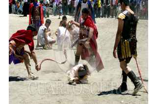 NATIVITAS, TLAXCALA 06ABRIL2007,-Dentro de la representacion de la pasion y muerte de Jesús de Nazaret en la Comunidad de Santa Cruz Aquiahuac se realiza una escenificacion del "Circo Romano"donde se narra como los esclavos llegaban a ser gladiadores. FOTO:CARLOS SEOANE/CUARTOSCURO.COM