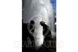 MÉXICO D.F. 07ABRIL2007.-En la calle de Genaro García y avenida Santa Cruz Meyehualco en Iztapalapa se presento una fuga de agua potable al romperse la tuberia y a la cual acudieron los bomberos que tardaron aproximadamente una hora en llegar. FOTO: PEDRO MARRUFO/CUARTOSCURO.COM