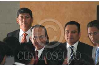 MÉXICO, D.F. 12ABRIL2007.- Se firmó el decreto de derogación de delitos contra periodistas. Daniel Cabeza de Vaca, ex procurador de la república y Cesar Camacho Quiroz, presidente de la comisión de justicia de la Cámara de Diputados estuvieron presentes. FOTO: PAOLA HIDALGO/CUARTOSCURO.COM