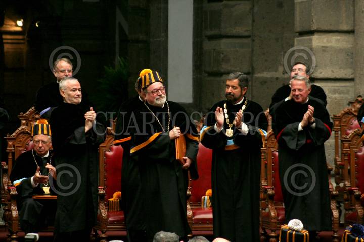 MÉXICO, D.F., 12ABRIL2007.- Se llevó a cabo la ceremonia de entrega de Doctorados Honoris Causa por la UNAM a personajes destacados dentro de la cultura y ciencia, la cual fue presidida por el rector de la Máxima Casa de Estudios, Juan Ramón de la Fuente. FOTO: ISAAC ESQUIVEL/CUARTOSCURO.COM