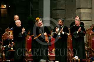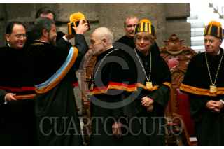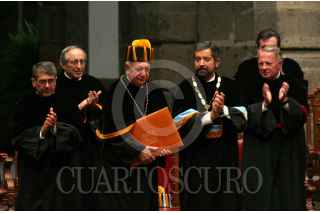 MÉXICO, D.F., 12ABRIL2007.- Se llevó a cabo la ceremonia de entrega de Doctorados Honoris Causa por la UNAM a personajes destacados dentro de la cultura y ciencia, la cual fue presidida por el rector de la Máxima Casa de Estudios, Juan Ramón de la Fuente. FOTO: ISAAC ESQUIVEL/CUARTOSCURO.COM