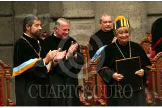 MÉXICO, D.F., 11ABRIL2007.- La filósofa mexicana Juliana Gonzáles recibió el Doctorado Honoris Causa por la UNAM, de las manos del rector Juan Ramón de la Fuente. FOTO: ISAAC ESQUIVEL/CUARTOSCURO.COM