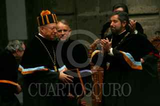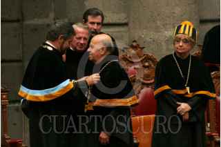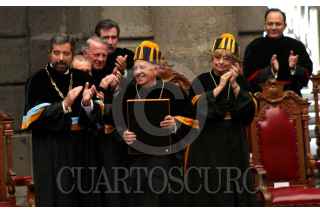 MÉXICO, D.F., 11ABRIL2007.- El ex rector de la UNAM, Jorge Carpizo, y el historiador Miguel León Portilla, fueron algunos de los asistentes a la ceremopnia de entrega del Doctorado Honoris Causa por la UNAM. FOTO: ISAAC ESQUIVEL/CUARTOSCURO.COM