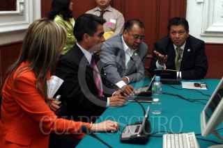 MÉXICO, D.F. 12ABRIL2007.- Diputados de la comisión de administracion de la Asamblea Legislativa del D.F., muestra el nuevo sistema electronico de votacion que pretenden instalar en el recinto legislativo. FOTO: SAÚL LÓPEZ/CUARTOSCURO.COM