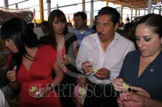MÉXICO, D.F., 12ABRIL2007.- Se llevo acabo la 2a muestra gastronómica del nopal en el municipio de Milpa Alta, como una forma para promover su consumo. El delegado de Milpa Alta Jose Luis Cabrera y la secretaria de turismo Alejandra Barrales, aprovecharon la ocasión para degustar el nopal en sus distintas formas de preparacion. FOTO: EZEQUIEL TLAXCALA/ CUARTOSCURO.COM