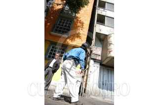 MÉXICO D.F. 13ABRIL2007.-Un gasero observa el edificio que se encuantra ladeado al parecer por el sismo ocurrido la madrugada de este viernes, ubicado en la calzada de Tlalpan 1215 colonia San Simon. FOTO: GUILLERMO PEREA/CUARTOSCURO.COM