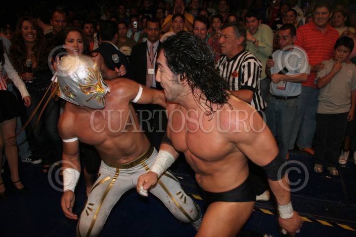 MÉXICO, D.F., 13ABRIL2007.- Se llevo acabo el programa "La Hora de la Papa" en la Arena México, en donde se dio una pelea entre el Místico y el Hijo del Perro Aguayo para disputar el amor de Jacqueline García. FOTO: EZEQUIEL TLAXCALA/ CUARTOSCURO.COM