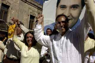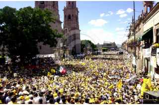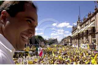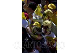 No importo el intenso calór para demostrar su militancia. FOTO: Oswaldo Ramírez/Enviado/CUARTOSCURO.COM