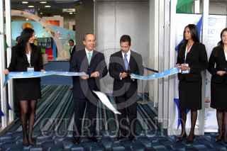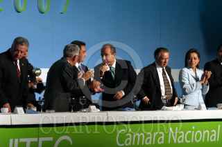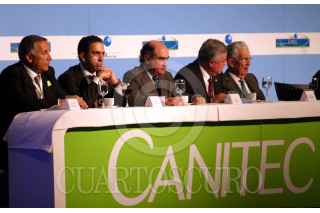 MÉXICO, D.F., 18ABRIL2007.- Héctor Osuna, Presidente de la COFETEL, Javier Lozano, Secretario del Trabajo, Luis Tellez, Secretaria de Energía,Jorge Zeremño Infante, diputado federal y Alejandro Alvarez Guerrero, durante la comida inaugural de la Expo Convención CANITEC 2007. FOTO: MOISÉS PABLO/CUARTOSCURO.COM