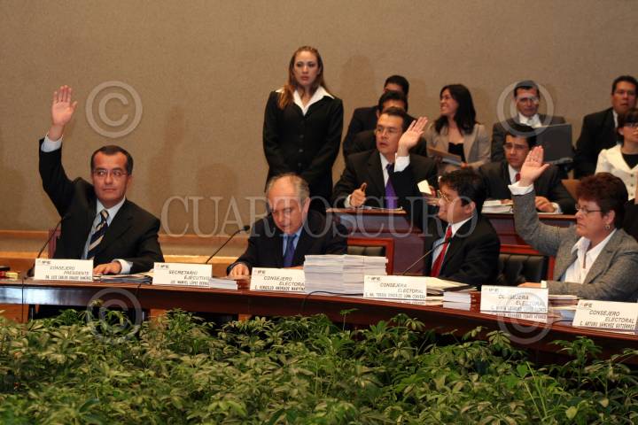MÉXICO, D.F. 18ABRIL2007.- Los consejeros electorales Alejandra Latapí, Lourdes del refugio López y Andres Albo Márquez durante la sesión extraordinaria en la sede del Instituto Federal Electoral. FOTO: PAOLA HIDALGO/CUARTOSCURO.COM
