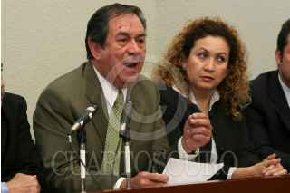 MÉXICO, D.F. 19ABRIL2007.- Humberto Dávila Esquivel, representante del SNTE y la senadora Silvia Luna durante la conferencia de prensa que ofrecieron en la Cámara de Diputados. FOTO: PAOLA HIDALGO/CUARTOSCURO.COM