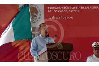 SAN JOSÉ DEL CABO, BAJA CALIFORNIA SUR, 19ABRIL2007.- Felipe Calderón Hinojosa, Presidente de la República, en el marco de su gira por la entidad ofreció un mensaje durante la ceremonia de inauguración de la planta desaladora de los Cabos. FOTO: IMPERIO RESENDIZ/CUARTOSCURO.COM
