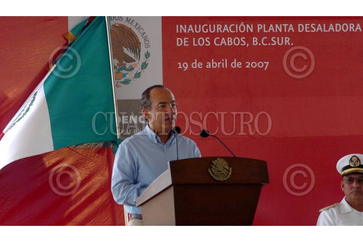 SAN JOSÉ DEL CABO, BAJA CALIFORNIA SUR, 19ABRIL2007.- Felipe Calderón Hinojosa, Presidente de la República, en el marco de su gira por la entidad ofreció un mensaje durante la ceremonia de inauguración de la planta desaladora de los Cabos. FOTO: IMPERIO RESENDIZ/CUARTOSCURO.COM