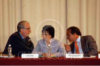 MÉXICO D.F. 19ABRIL2007.-Amerigo Ilcalcaterra representante de la OACNUDH acompañado de Elena Azaola y de Paulo Sergio Piñeiro durante la presentación del informe sobre la vilencia contra la niñez, realizado en el Museo Nacional de Antropologia e Hidtoria. FOTO: GILLERMO PEREA/CUARTOSCURO.COM