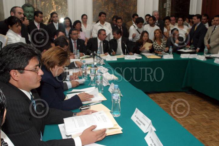 MÉXICO, D.F., 19ABRIL2007.- Marco Antonio Garcia Ayala, Daniel Ordoñez Hernandez y Leticia Quezada presidentes de la comisión de trabajo, administracion y procuracion de justicia, de salud asistencia social equidad y genero en la asamblea legislativa del D.F. durante la votacion para una neuva revision del dictamen. FOTO: SAÚL LÓPEZ/CUARTOSCURO.COM