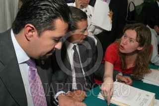 MÉXICO, D.F., 19ABRIL2007.- Marco Antonio Garcia Ayala, Daniel Ordoñez Hernandez y Leticia Quezada presidentes de la comisión de trabajo, administracion y procuracion de justicia, de salud asistencia social equidad y genero en la asamblea legislativa del D.F. durante la votacion para una neuva revision del dictamen. FOTO: SAÚL LÓPEZ/CUARTOSCURO.COM