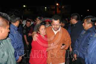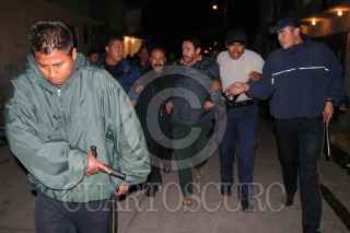 TEXCOCO. EDOMEX.- 20ABRIL2007.- Al rededor de las tres de la mañana elementos antimotines de la policia estatal y municipal de Texcoco, rescatan al secretario del ayuntamiento de Texcoco Manuel Carrillo Jara despues que habitantes de la comunidad San Andres Riva Palacio lo tenian retenido en la delegacion de la entidad, a causa de que horas antes dichos habitantes se enfrentaron a golpes por varias ocaciones a las afueras de la delegacion municipal por diferencias de resultados del candidato que obtuvo el triunfo para la dirigencia de las elecciones del Consejo de Participación Ciudadana. FOTO: SAÚL LÓPEZ/CUARTOSCURO.COM