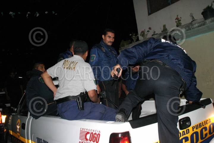 TEXCOCO. EDOMEX.- 20ABRIL2007.- Al rededor de las tres de la mañana elementos antimotines de la policia estatal y municipal de Texcoco, rescatan al secretario del ayuntamiento de Texcoco Manuel Carrillo Jara despues que habitantes de la comunidad San Andres Riva Palacio lo tenian retenido en la delegacion de la entidad, a causa de que horas antes dichos habitantes se enfrentaron a golpes por varias ocaciones a las afueras de la delegacion municipal por diferencias de resultados del candidato que obtuvo el triunfo para la dirigencia de las elecciones del Consejo de Participación Ciudadana. FOTO: SAÚL LÓPEZ/CUARTOSCURO.COM